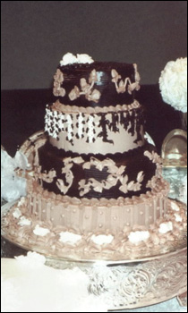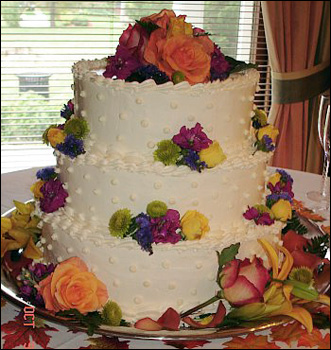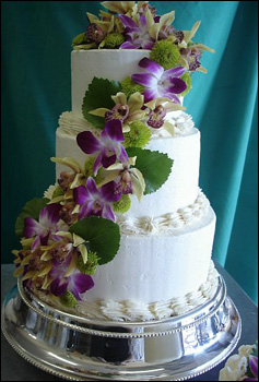 groom initials can be designed on the center tier of this cake. |